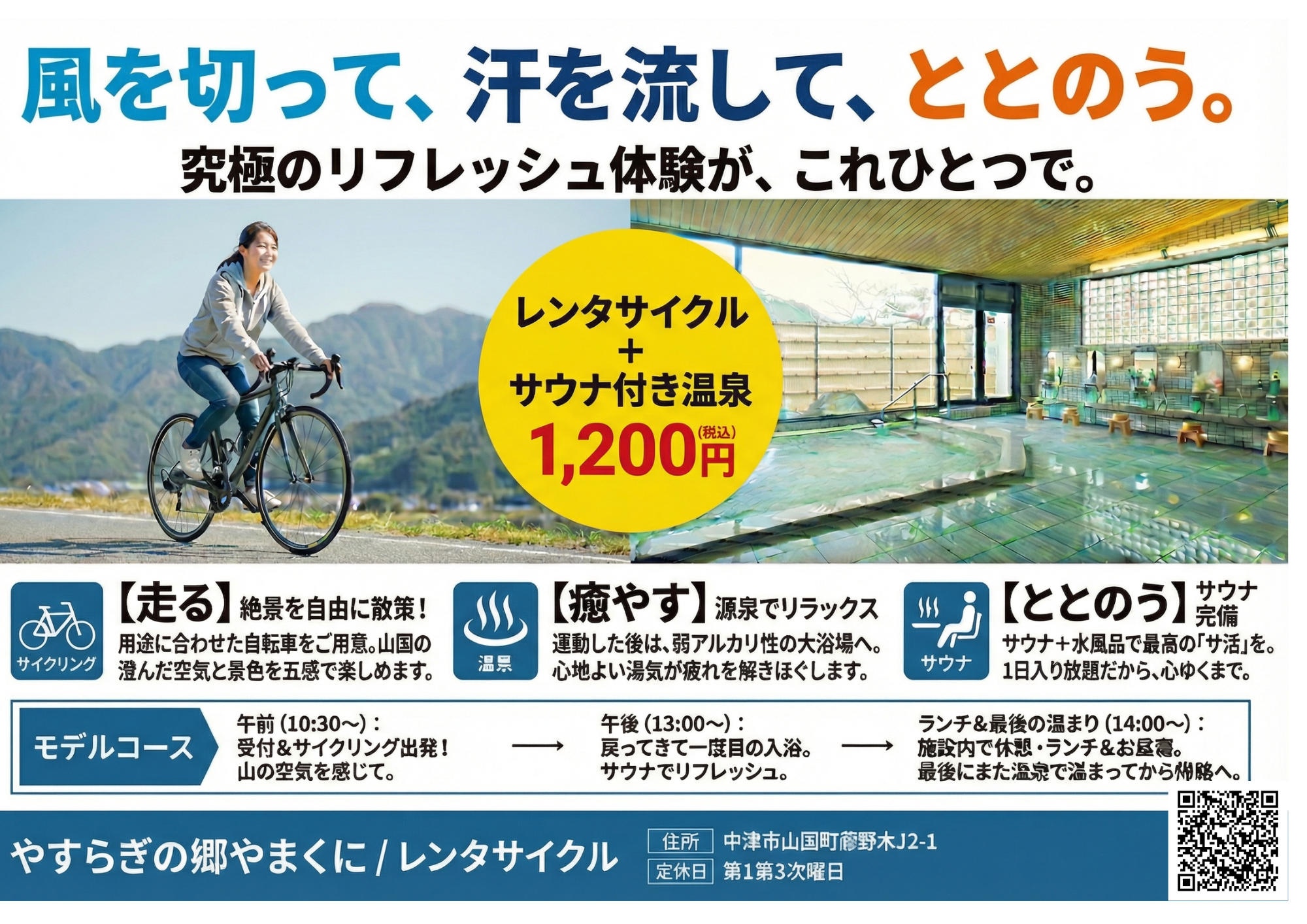 また、付近には天然の湯が楽しめる温浴施設「やすらぎの郷やまくに」や